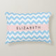 Blue Zigzag, Blue Chevron, Wave Pattern, Your Name Decorative Cushion