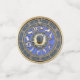Pack of 60 small, medium and large pieces of confetti with an image, on both sides, of a blue and gold zodiac wheel. See matching round sticker and wrapping paper. See the entire Gemstones & Medallions Confetti collection in the HOME section.