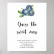 Cute baby shower invitation card featuring watercolor illustration of blueberries. The text says "a berry sweet baby is on the way." Matching items available.
