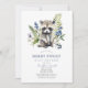 This cute "berry sweet" boy's baby shower invitation features a baby raccoon, greenery, blueberries, and a purple flower in watercolor. The reverse side features a white background with dusty blue gingham/buffalo plaid/check. Personalize it for your needs. You can find more bunny products at my store.
