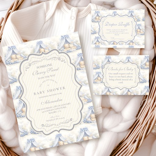 Blueberry Baby Canopy Toile Baby Shower Invitation