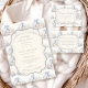 A sweet vintage-inspired design featuring delicate blue bows, soft striped detailing, and charming blueberry garden illustrations. Toile-style artwork with adorable animals and fruit baskets creates a classic storybook feel in a soft powder blue palette. The ornate central frame adds elegance while keeping the overall look light, refined, and timeless. Perfect for a baby shower with a gentle garden theme and a touch of traditional charm.