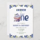 Boy's Berry 1st birthday party invitation with blueberry theme. Sweet One blueberry frosted cupcake with blueberry border. Berry fun for your child's berry first birthday!