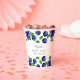 Simple and elegant Berry First Birthday watercolor blueberries personalised paper cups. Designed and illustrated with love by Kristine Lee Designs www.kristineleedesigns.com