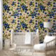 Blueberry Blossoms Green Branches Repeat Pattern Wallpaper