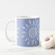This white mandala sits on a dusty periwinkle background. The colours are soft and relaxed. Part of the Avanenn Mandala Collection.