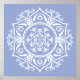 This white mandala sits on a dusty periwinkle background. The colours are soft and relaxed. Part of the Rosenn Mandala Collection.