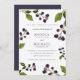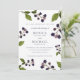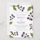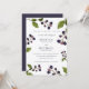 Elegant leaf and berries inspired wedding invitation design featuring a delicate branches of blueberries set on a white background.