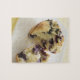 Blueberry muffin split open on a white plate jigsaw puzzle