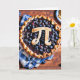 Blueberry pie with blueberries and pi symbol crust on blue and white buffalo plaid kitchen towel