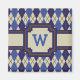 Argyle goes 8-bit with this preppy navy blue, denim blue, and khaki colour scheme with a rich brown contrast stitch creating a perfect look for lovers of this classic pattern. Customise the monogram with the appropriate initial for a personalised touch.