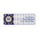 Argyle goes 8-bit with this preppy navy blue, denim blue, and khaki colour scheme with a rich brown contrast stitch creating a perfect look for lovers of this classic pattern. Customise the monogram and the address details to create a label that is uniquely your own. These labels are also available in shipping and address sizes.