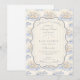 A sweet vintage-inspired design featuring delicate blue bows, soft striped detailing, and charming blueberry garden illustrations. Toile-style artwork with adorable animals and fruit baskets creates a classic storybook feel in a soft powder blue palette. The ornate central frame adds elegance while keeping the overall look light, refined, and timeless. Perfect for a baby shower with a gentle garden theme and a touch of traditional charm.