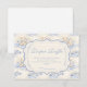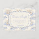 A sweet vintage-inspired design featuring delicate blue bows, soft striped detailing, and charming blueberry garden illustrations. Toile-style artwork with adorable animals and fruit baskets creates a classic storybook feel in a soft powder blue palette. The ornate central frame adds elegance while keeping the overall look light, refined, and timeless. Perfect for a baby shower with a gentle garden theme and a touch of traditional charm.