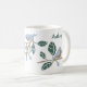 Create a berry sweet personalised gift. This coffee mug features simple illustrations of bluebirds perched on branches with blueberries. The graphics are in light blue, light brown and dark green. There's a spot to add a name on both sides of the mug in green script lettering.