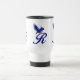 Elegant monogram letter R with a pretty bluebird travel coffee or tea mug. Click on Customise to add text. Great gift idea. This image is available on many products in my gallery.