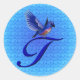 Elegant monogram letter T with a pretty bluebird sticker or label. Click on Customise to add any text you like to personalise this item. Great gift idea! Please visit Smilin' Eyes Monograms to see more floral, nature, and digital art monogrammed cards and gifts.
