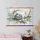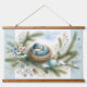 Bluebird Nest with Ornaments in Winter Pines Hanging Tapestry