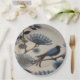 BLUEBIRD PERCHED ON TREE BRANCH WITH BLUE FLOWERS