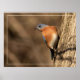 Nice profile of a bluebird as it leans out from its tree trunk perch.