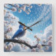 Bluebird Singing On a Cherry Tree Branch Square Wall Clock