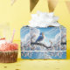 A bluebird sings joyfully on a cherry blossom branch with musical notes swirling through the sky
