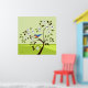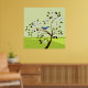 Square landscape art of a bluebird sitting on a decorative tree blooming with white flowers