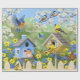 Bluebirds Goldfinches Birdhouses Flower Garden Wrapping Paper