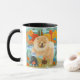 Stunning mugs. Choose your trim colour. BLUEBIRDS OF HAPPINESS In a quaint village, autumn dressed the world in warm shades of red and gold. Among the leaves, a chow dog named Chester frolicked. His golden fur was a cosy coat against the autumn chill.