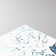 A charming illustration of pretty little blue birds perched on a cherry blossom branch, against a hazy, white, snowy backdrop.