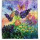 Print of my watercolor & acrylic painting featuring a bouquet of wildflowers, bluebonnets, purple cone flowers, dandelions, and a zinnia visited by monarchs & a clouded sulphur butterfly.