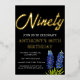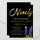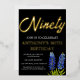 Bluebonnets watercolor floral, Texas flowers, modern, black and gold foil, stylish 90th birthday invitations. You can personalise it with your own details.