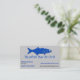Business card template featuring a bluefish illustration on grey background.