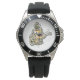 Has heft and feel of expensive stainless steel quartz wrist watches. Solid construction and good looks. Although it had a really top quality rubber strap, I substituted a stainless steel "Shark" style mesh strap, which I think is the most comfortable strap available. Perfect. True colors of original image. Clear, crisp image precisely aligned and spaced.