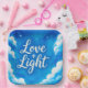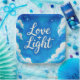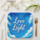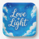 These whimsical party plates feature a pretty blue white cloudy sky with the common NewAge greeting Love + Light.