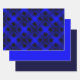 Gift Giving Package Wrapping Paper set of 3 sheets printed with Bluesy Blue Gradient Star Bow abstract repeating pattern design illustration by TheFabricSeal at Zazzle.com #Zazzle Made https://www.zazzle.com/store/thefabricseal. Drawing design concept inspired by octagons, eight point stars and gift packaging ribbon bow shapes along with mechanical drawing and painting with gradient ombre light to dark colour backgrounds.