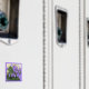Lovely, blue violets contrast with white stucco for this pretty magnet. Collect a bunch to create your own, "fridge garden".