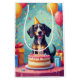 A cheerful birthday scene featuring a Bluetick Coonhound enjoying a festive celebration surrounded by colourful balloons, presents, and a bright birthday cake. The playful party setting and lively colours create a joyful and heartwarming design full of celebration energy.
