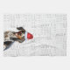 Here's a fun holiday kitchen towel. An adorable watercolor illustration of a Bluetick Coonhound sits with a fun 'woof' word art background in a soft. The dog wears a cute Santa hat.