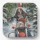 Bluetick Coonhound Dog Riding Motorcycle Christmas Paper Plate