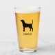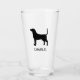 Enjoy a pint of your favourite cold beverage out of this unique 16 oz drinking glass. Bluetick Coonhound silhouette with custom text for your name or slogan. Makes a fun personalised gift for Coonhound lovers. Visit Jenn's Doodle World for more custom drinkware and dog breed designs.