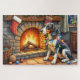 Bluetick Coonhound Fireplace with Christmas Lights Jigsaw Puzzle