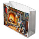 Bluetick Coonhound Fireplace with Christmas Lights Large Gift Bag