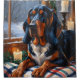 A heartwarming holiday scene featuring a dog sitting peacefully beside a window, surrounded by glowing Christmas lights. This cosy and festive design captures the spirit of the season, perfect for adding warmth and charm to any space. Ideal for dog lovers and holiday decor enthusiasts.