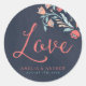 Bluish Chalkboard Floral Love Wedding Round Classic Round Sticker