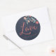 This wedding Love round sticker features beautiful floral against a bluish chalkboard background with the word "Love" in modern script font. Use it to seal your Wedding envelopes or for decoration. Check out the Wedding Invitation and other matching wedding items in my collection here -> http://www.zazzle.com/collections/bluish_chalkboard_floral_bridal_and_wedding-119872540777216768?rf=238364477188679314