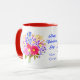 A valentine's mug with beautiful flower bouquet images. The background, image and text can be personalized. Original artwork by W.B.