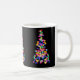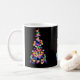 Celebrate the winter holiday season with this original, colourful, abstract photo of blurred Christmas lights. The bokeh created from the pink, red, orange, blue, green, and yellow lights form the shape of a Christmas tree. The background of the vertical image is black.