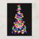 Celebrate the winter holiday season with this original, colourful, abstract photo of blurred Christmas lights. The bokeh created from the pink, red, orange, blue, green, and yellow lights form the shape of a Christmas tree. The background of the vertical image is black.