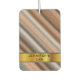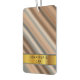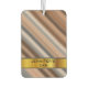 This air freshener design features a blurry striped pattern inspired by rustic colours like shades of brown, grey, and beige. It also features a custom name or message within a faux gold look banner.